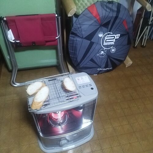 20年前のストーブが調子悪くて 離れの良いストーブを2階に入れ 朝から軽くトースト焼いてみたよ 残り蟹鍋と、きのう頂いた玉子焼いて 家の裏庭も14 時まで陽が当たらず 裏のオジさん家は10時から当たる オジさんは春まで田舎に帰らないから 木に竿を渡して…